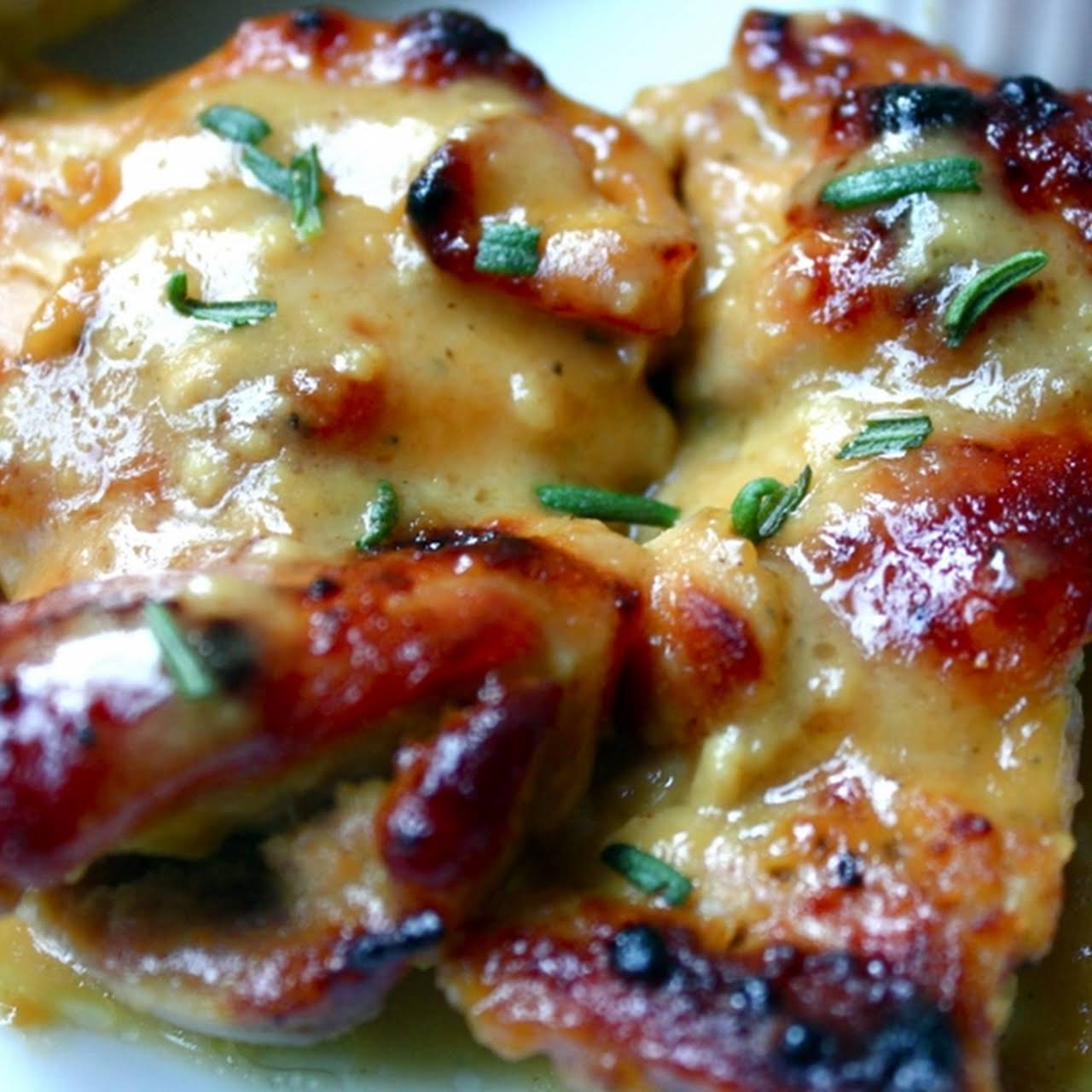 Man-pleasing Chicken like Chicken Thighs, Dijon Mustard, Maple Syrup, Rice Vinegar, open Rosemary, Salt, Pepper